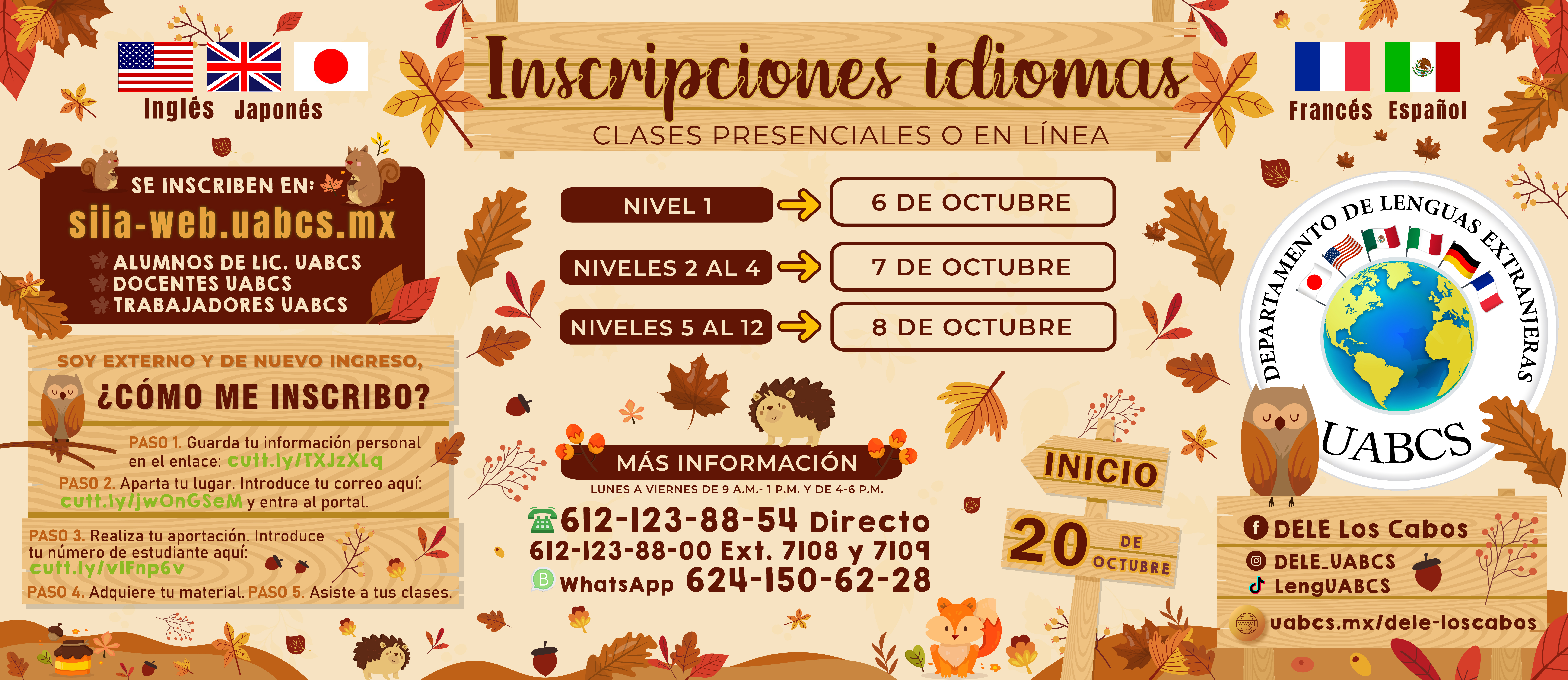 Fechas sujetas a cambio sin previo aviso. Para confirmar la información, favor de comunicarse a nuestros teléfonos o mandar un mensaje a través de Facebook o WhatsApp.